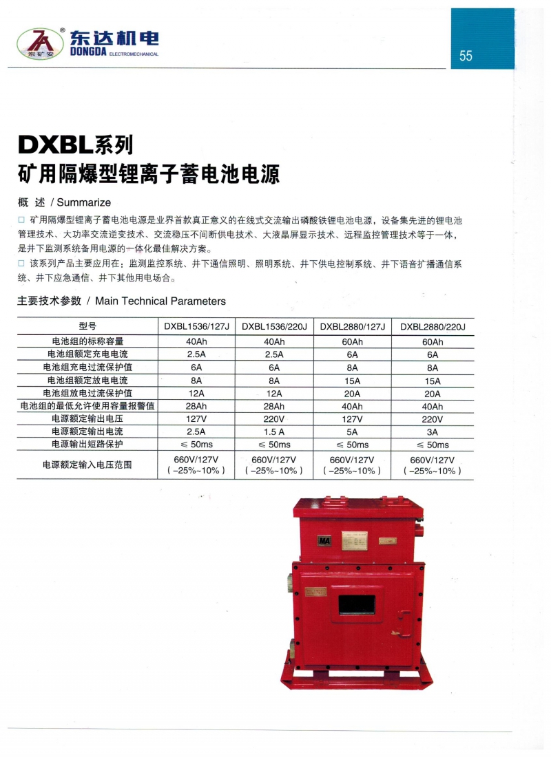 矿用隔爆型锂离子蓄电池电源型号:DXBL1536/127J、DXBL1536/220J、DXBL2880/127J、DXBL2280/220J
