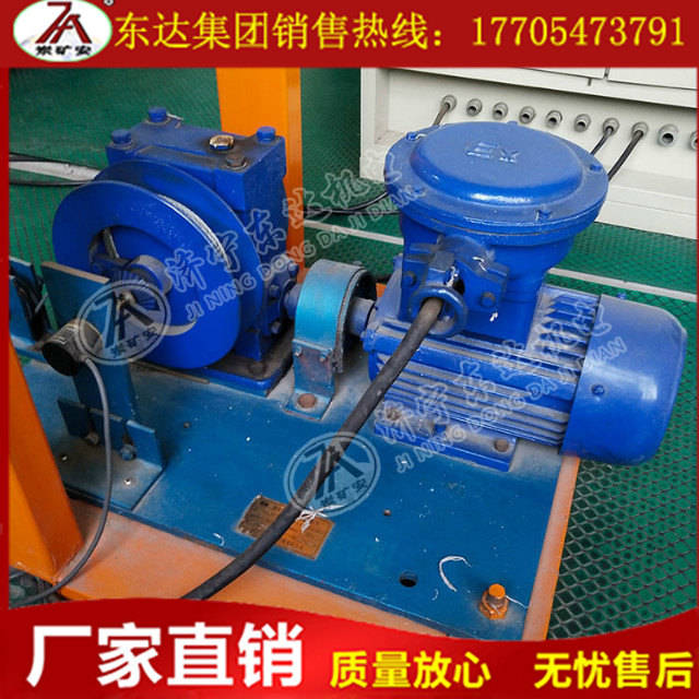 提升绞车由防爆电动机、减速机、滚筒、底板和位置传感器支架及位置传感器组成。减速机采用蜗轮蜗杆减速型,防止电机停转时挡车栏的自动下滑。